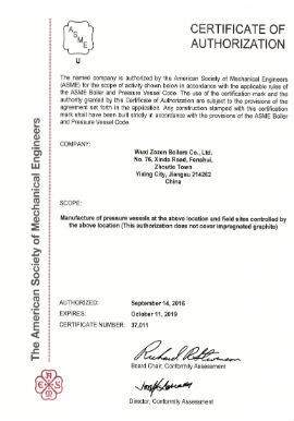 無錫中正鍋爐有限公司公司持有A級鍋爐制造許可證,BRⅡ級壓力容器制造許可證,美國ASME標(biāo)準(zhǔn)“S”(動力鍋爐)、“U”(壓力容器)許可鋼印,并全面通過ISO9001:2015國 際質(zhì)量體系認(rèn)證。
